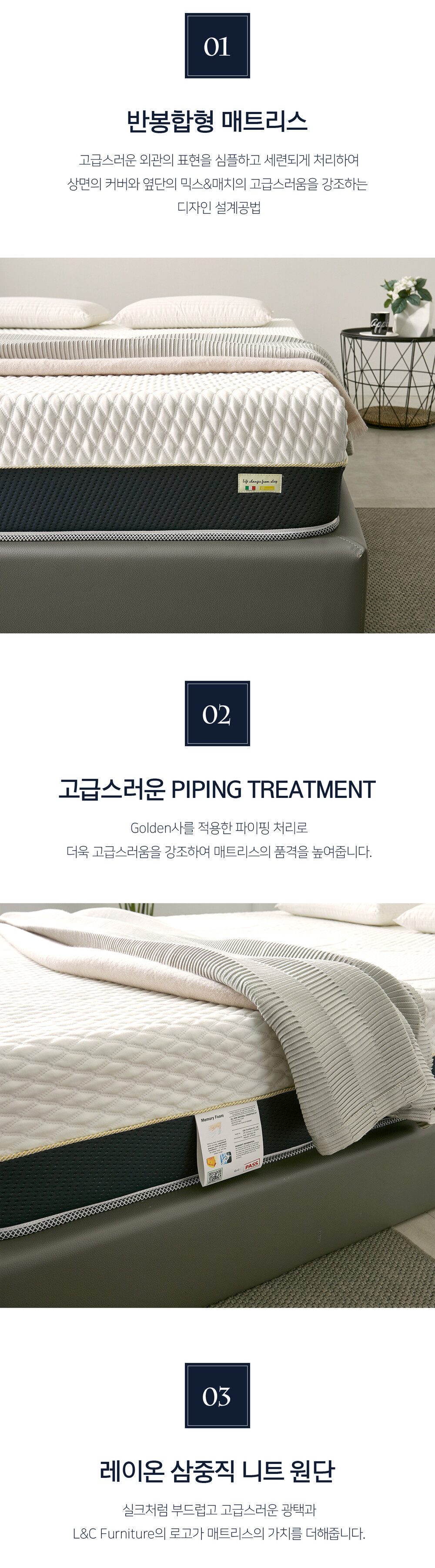 포근하고 단단하게, 최적의 편안함을 제공해주는 세련되고 깔끔한 고급 매트리스입니다.